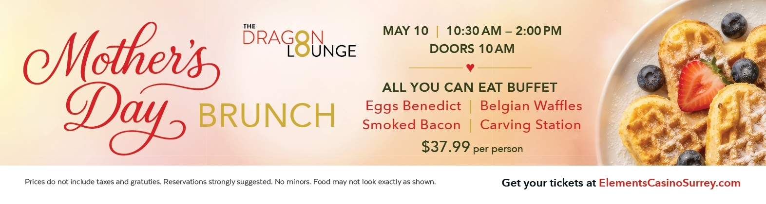 Join us for a memorable and delicious celebration, where the ambiance is warm, the food is exceptional, and the company is cherished. Let us help you create lasting memories and make this Mother’s Day truly special at Elements Casino Surrey!